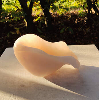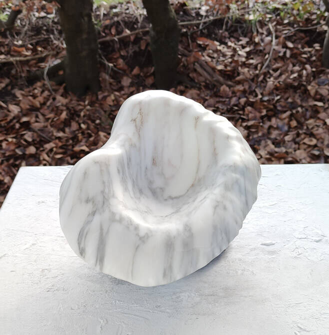 The source of inspiration were the young beech leaves from the long beech hedge in my garden. I liked not polishing the sculpture completely smooth, and leaving chisel marks visible. It's a lively and timeless sculpture.