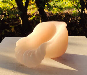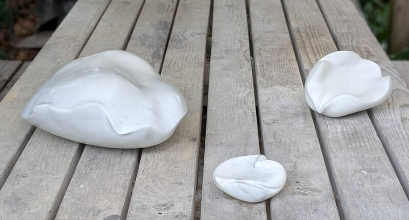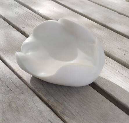 Comments: Small White Flower is made in a series of Leaf & Flower sculptures. It is a timeless sculpture with beautiful lines, shapes and structures. Inspiration was in this stone itself and the flowers in my garden. More flowers are on the page Petals and Ceramic.