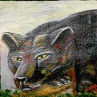 Before and after that I had created Cat I had painted various felines, including for a special theme exhibition entitled Dream Island with hanging papier-mâché sculptures and paintings in 1996. And I made a soapstone figurine of a sleeping cat.